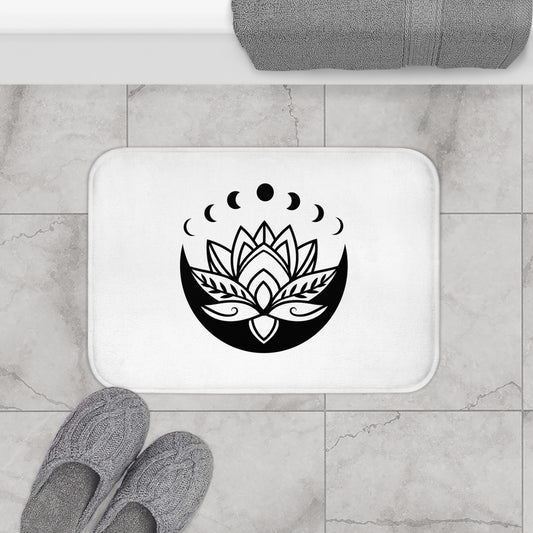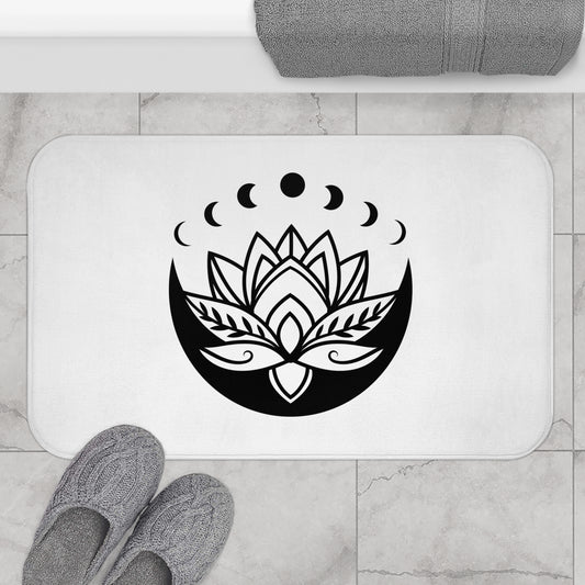 MONDPHASEN LOTUSBLÜTE • Badvorleger Weiss / Fussmatte / Badteppich EXTRA Weich • 43 x 61 cm & 53 x 86 cm