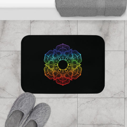 MANDALA BLUME BUNT REGENBOGEN - SPIRITUELLES MOTIV • Badvorleger Weiss / Fussmatte / Badteppich EXTRA Weich • 43 x 61 cm & 53 x 86 cm