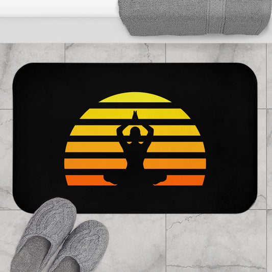 YOGA POSE MEDITATION SONNENAUFGANG RETRO • Badvorleger Weiss / Fussmatte / Badteppich EXTRA Weich • 43 x 61 cm & 53 x 86 cm