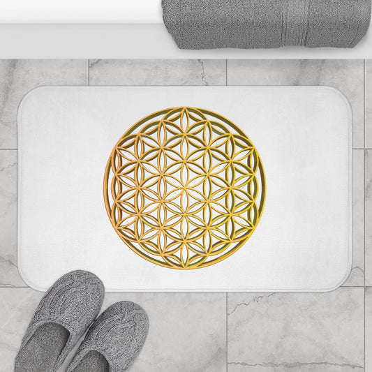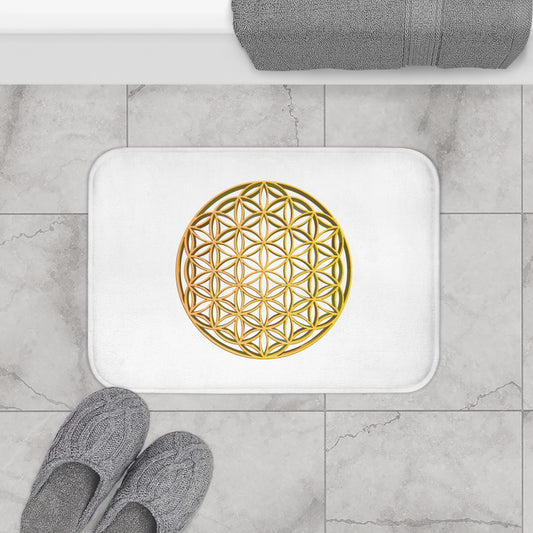 BLUME DES LEBENS GOLDGELB • Badvorleger Weiss / Fussmatte / Badteppich EXTRA Weich • 53 x 86 cm