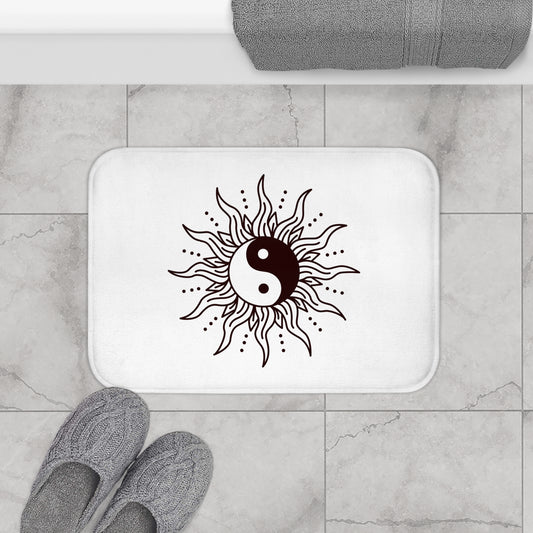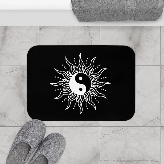 YING YANG - SPIRITUELLES MOTIV • Badvorleger Schwarz / Fussmatte / Badteppich EXTRA Weich • 43 x 61 cm & 53 x 86 cm