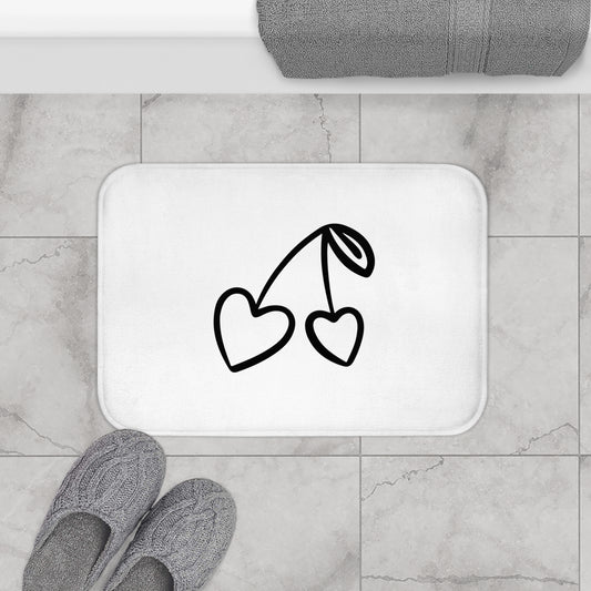 HERZ KIRSCHEN • Liebesbeweis Geschenk, LOVE Liebesbotschaft • Badvorleger Weiss / Fussmatte / Badteppich EXTRA Weich • 43 x 61 cm & 53 x 86 cm
