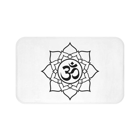 OM ZEICHEN OHM SYMBOL in BLUMEN MANDALA • Badvorleger Weiss / Fussmatte / Badteppich EXTRA Weich • 43 x 61 cm & 53 x 86 cm