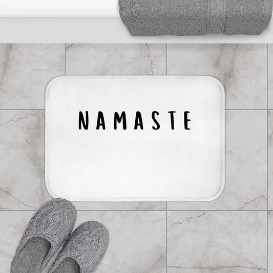 NAMASTE YOGA SPRUCH BEGRÜßUNG • Badvorleger Weiss / Fussmatte / Badteppich EXTRA Weich • 43 x 61 cm & 53 x 86 cm