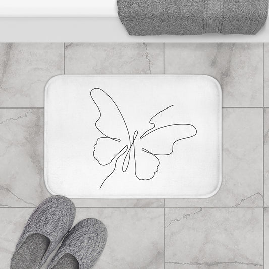 SCHMETTERLING Minimalistische Zeichnung • Badvorleger Weiss / Fussmatte / Badteppich EXTRA Weich • 43 x 61 cm & 53 x 86 cm