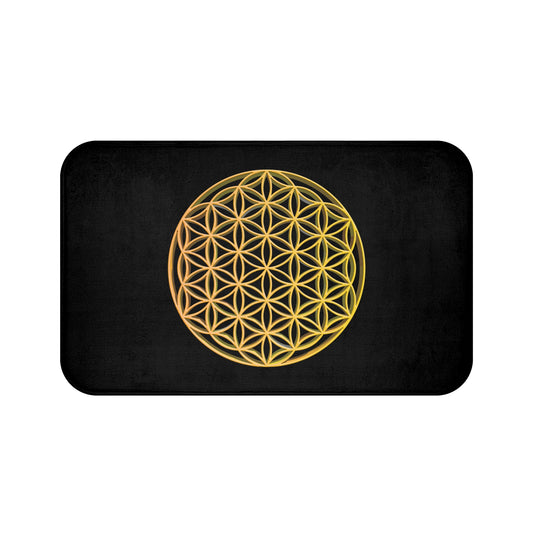 BLUME DES LEBENS GOLDGELB • Badvorleger Schwarz / Fussmatte / Badteppich EXTRA Weich • 53 x 86 cm