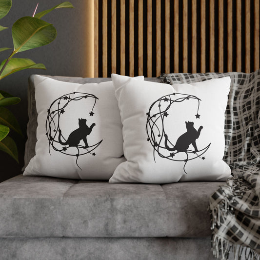 KATZE IM MOND • Deko Kissenbezug mit Reißverschluss Quadratisch Weiß