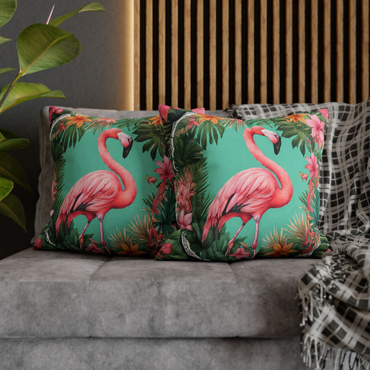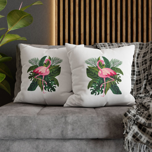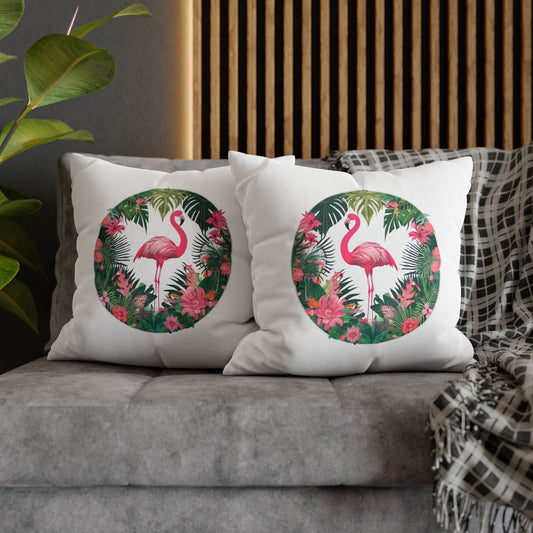 FLAMINGO EXOTISCHE BLUMEN • Deko Kissenbezug mit Reißverschluss Quadratisch Weiß