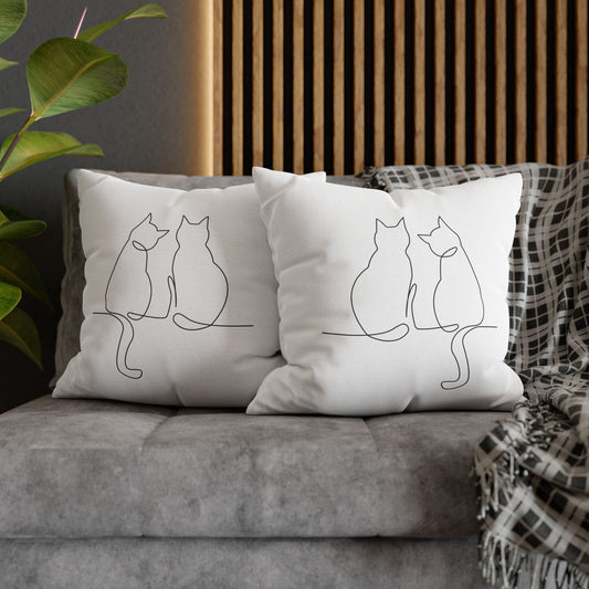 KATZEN MINIMALISTISCHE ZEICHNUNG SÜß • Deko Kissenbezug mit Reißverschluss Quadratisch Weiß