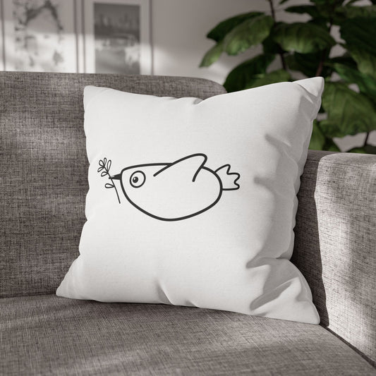 VOGEL VÖGELCHEN Eine-Linie-Zeichnung Minimalisitsch • Deko Kissenbezug Weiß