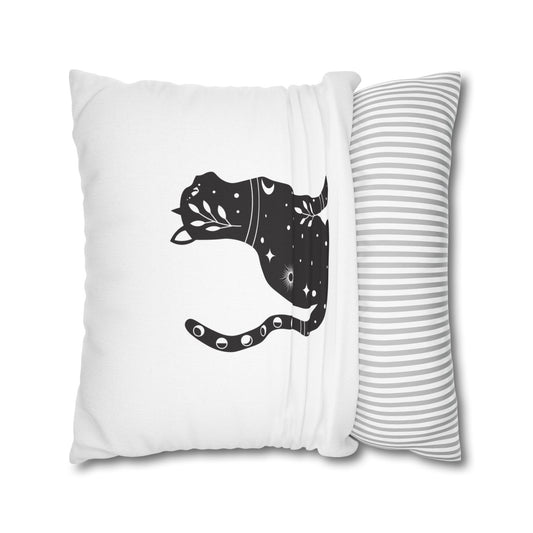 KATZE BLUME SPIRITUELL • Deko Kissenbezug mit Reißverschluss Quadratisch Weiß