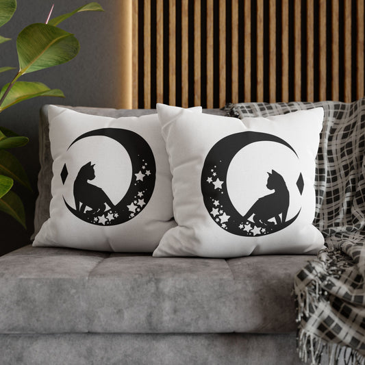 KATZE IM MOND SPIRITUELL • Deko Kissenbezug mit Reißverschluss Quadratisch Weiß