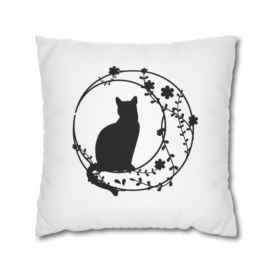 KATZE IM MOND BLUMEN • Deko Kissenbezug mit Reißverschluss Quadratisch Weiß