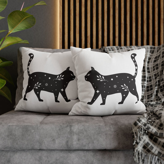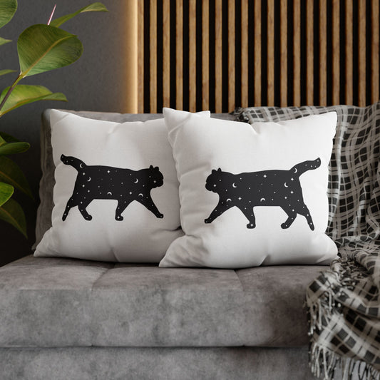 KATZE STERNENHIMMEL UNIVERSUM • Deko Kissenbezug mit Reißverschluss Quadratisch Weiß