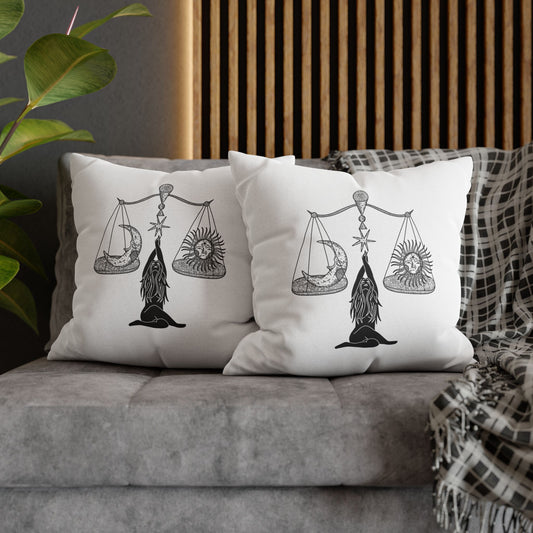 WAAGE STERNZEICHEN SONNE MOND • Deko Kissenbezug mit Reißverschluss Quadratisch Weiß