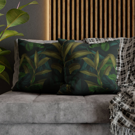DSCHUNGEL GRÜNE BLÄTTER • Deko Kissenbezug Quadratisch Schwarz Grün