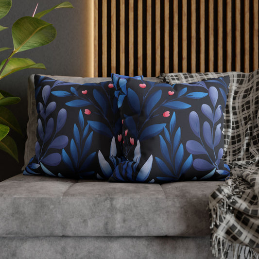 BLÄTTER EXOTISCH BLAU • Deko Kissenbezug mit Reißverschluss Quadratisch Schwarz