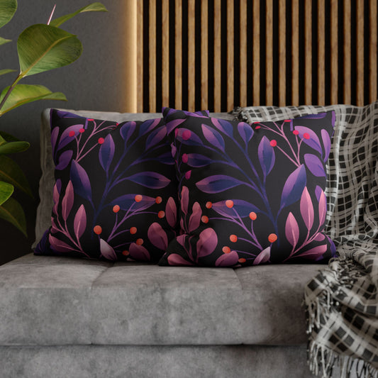 BLÄTTER BLUMEN • Deko Kissenbezug mit Reißverschluss Quadratisch Lila Violet