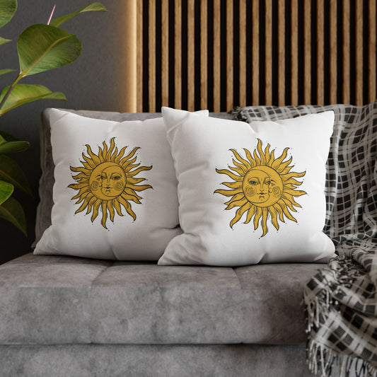 SONNE MOND VINTAGE ZEICHNUNG • Deko Kissenbezug mit Reißverschluss Quadratisch Weiß
