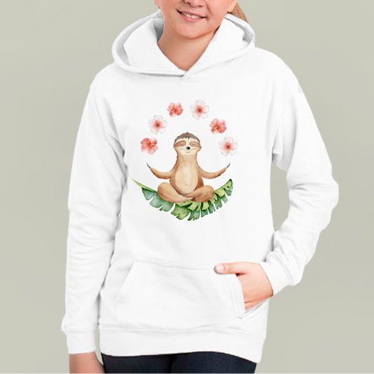 FAULTIER MEDITATION TIERYOGA NIEDLICH SÜß MIT BLUMEN • Kinder Hoodie für Mädchen & Jungen (7–16 Jahre) | Kuschelweiche Baumwolle 🌿