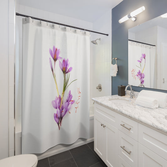 DUSCHVORHANG MIT BLUMENMUSTER KROKUSSE Frühblüher • Schöner Duschvorhang 180x200 cm Weiss