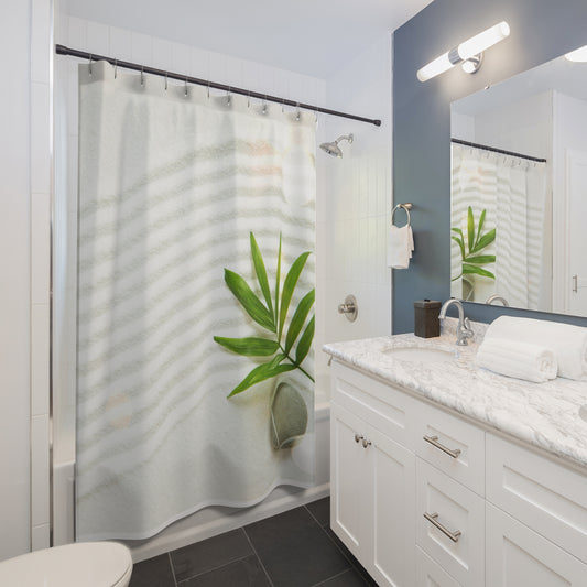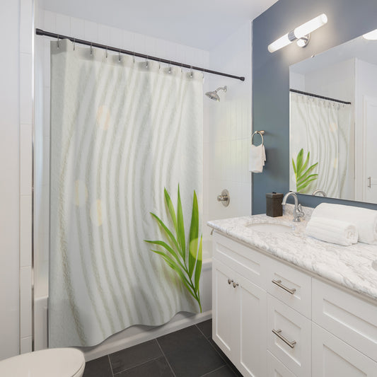 GRÜNE BLÄTTER IM ZEN GARTEN • Hochwertiger, Schöner Duschvorhang 180x200 cm Weiss
