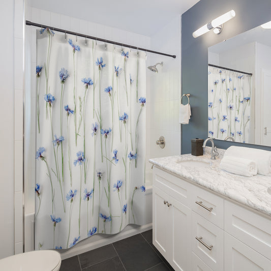 DUSCHVORHANG MIT BLUMENMUSTER - KORNBBLUMEN BLAU • Hochwertiger, Schöner Duschvorhang 180x200 cm