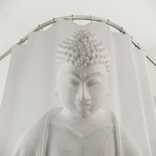 BUDDHA STATUE • Hochwertiger, Schöner Duschvorhang 180x200 cm CremeWeiss
