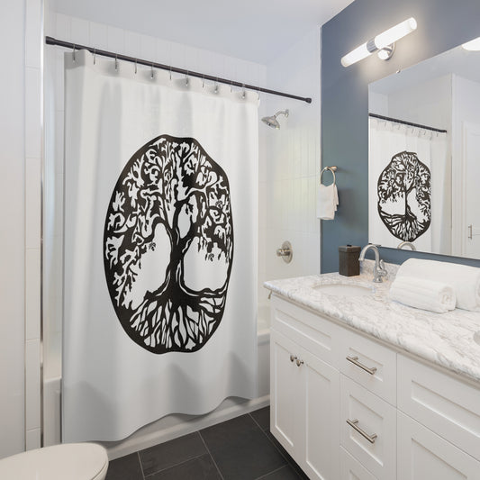 BAUM DES LEBENS SYMBOL • Hochwertiger, Schöner Duschvorhang 180x200 cm Weiss