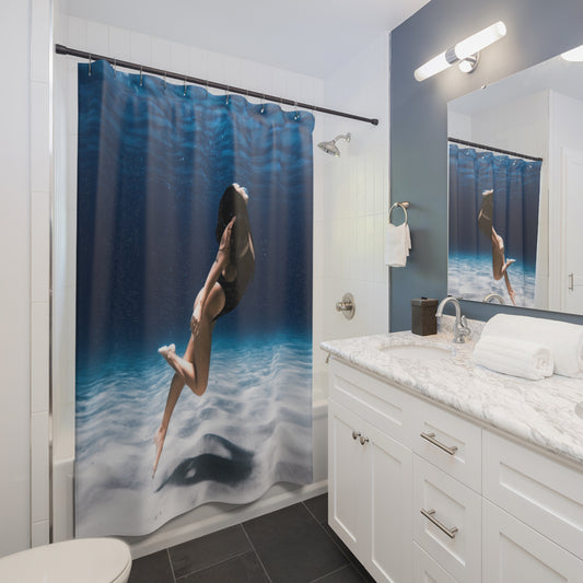 SCHÖNE FRAU UNTERWASSER Urlaubsmotiv • Hochwertiger, Schöner Duschvorhang 180x200 cm Weiss
