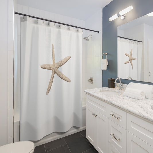 SEESTERN MEERESMOTIV • Hochwertiger, Schöner Duschvorhang 180x200 cm Weiss