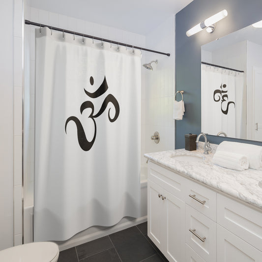 OM OHM YOGA SPRUCH • Hochwertiger, Schöner Duschvorhang 180x200 cm Weiss