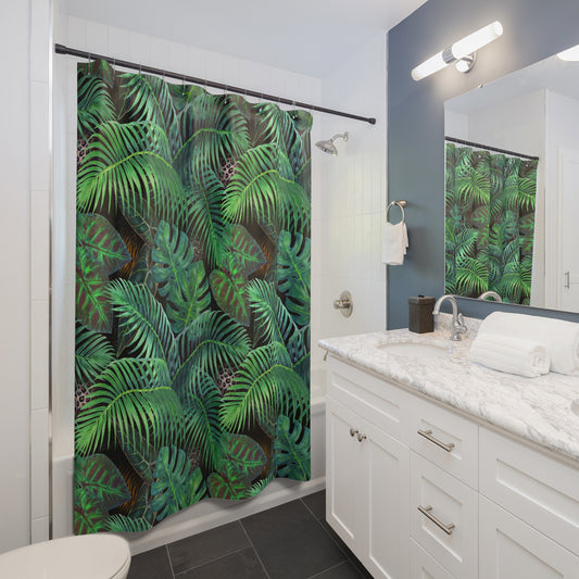 GRÜNE BLÄTTER DSCHUNGEL FARN • Hochwertiger, Schöner Duschvorhang 180x200 cm Weiss