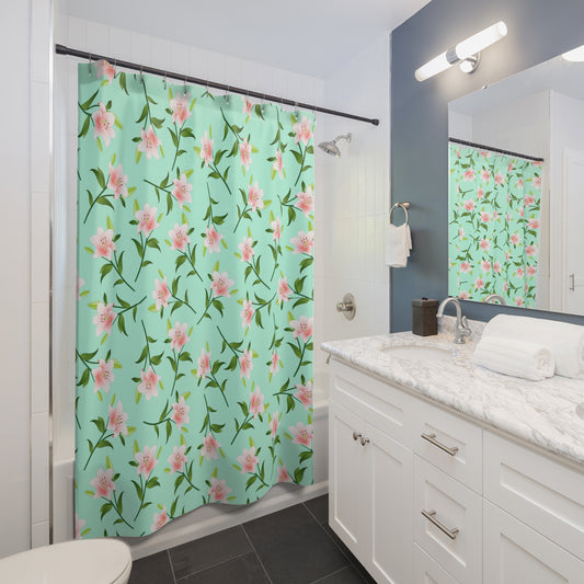 LILIEN VORHANG FÜR LILIENBLUMEN LIEBHABER • Hochwertiger, Schöner Duschvorhang 180x200 cm MINT-GRÜN