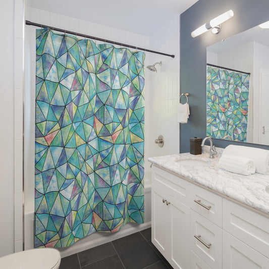 TÜRKISER VORHANG KALEIDOSKOP • Hochwertiger, Schöner Duschvorhang 180x200 cm