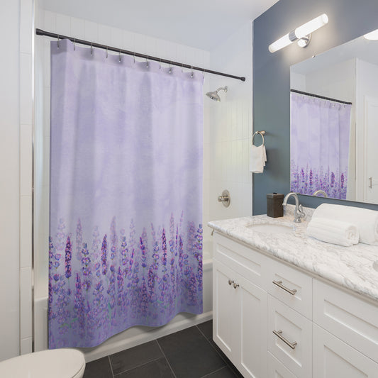 FLIEDER VORHANG VIOLETTE LAVENDELBLUMEN - KUNSTDRUCK • Duschvorhang 180x200 cm Weiss