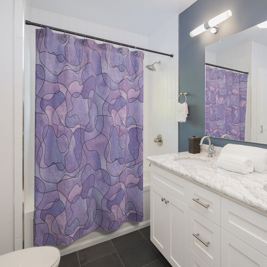 LILA WELLEN VIOLETT • Hochwertiger, Schöner Duschvorhang 180x200 cm Weiss