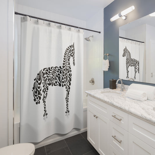 PFERD ZEICHNUNG KUNSTDRUCK • Hochwertiger, Schöner Duschvorhang 180x200 cm Weiss