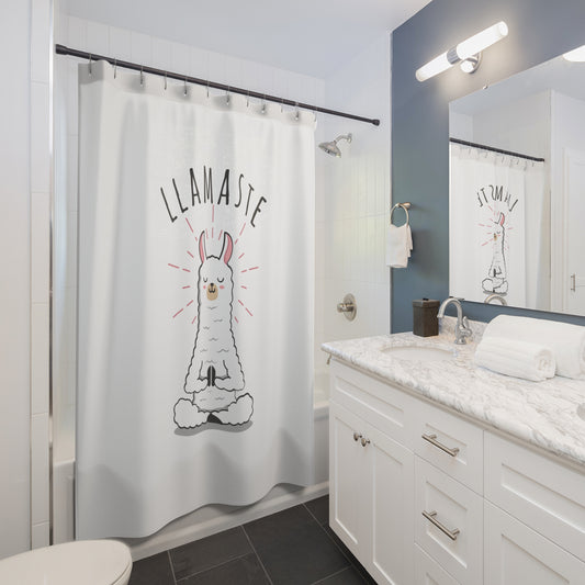 LLAMASTE LUSTIGES LAMA YOGA MEDITATION POSE • Duschvorhang 180x200 cm Weiss