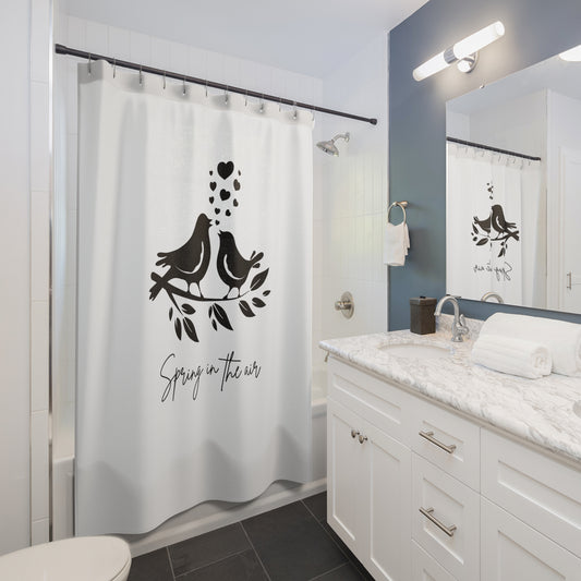 SPRING IN THE AIR - VERLIEBTE VÖGEL • LOVE Liebesbotschaft • Duschvorhang 180x200 cm Weiss