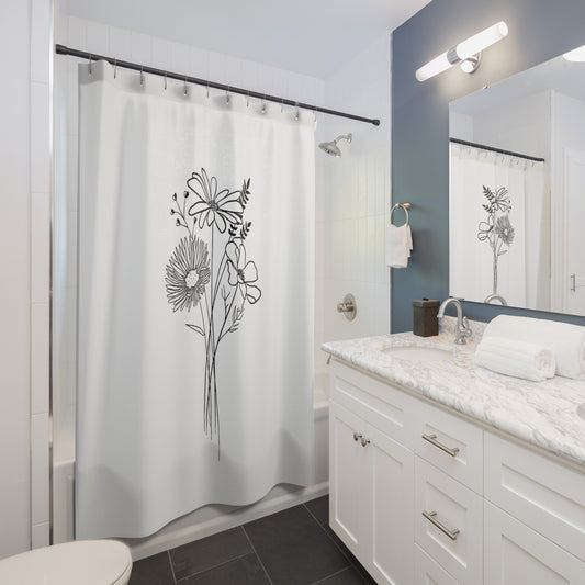 BLUMEN STRAUSS • Hochwertiger, Schöner Duschvorhang 180x200 cm Weiss