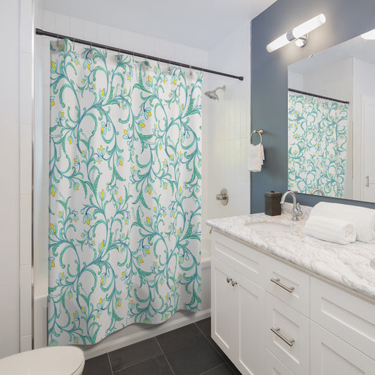 BLUMENMUSTER TÜRKIS BLAU • Hochwertiger, Schöner Duschvorhang 180x200 cm