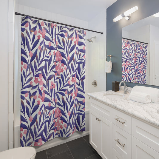 BLUMENMUSTER LILA ROSA • Hochwertiger, Schöner Duschvorhang 180x200 cm Weiss
