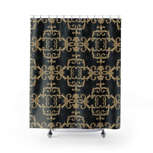 LUXUS GOLDSCHMUCK BAROCK • Hochwertiger, Schöner Duschvorhang 180x200 cm SCHWARZ