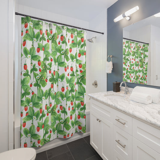 ERDBEER PFLANZEN • GRÜNE BLÄTTER • Hochwertiger, Schöner Duschvorhang 180x200 cm Grün