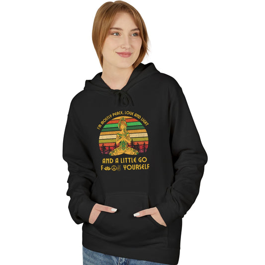 MOSTLY PEACE LOVE & LIGHT • Lustiger Spruch Yoga Humor • Hoodie für Damen & Herren Kuschelpullover • Baumwolle 🌿