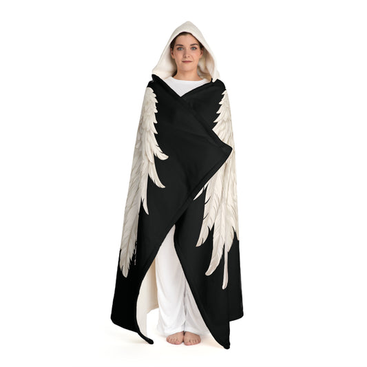 ENGELSFLÜGEL FEDERFLÜGEL • Kapuzen Kuscheldecke Schwarz • Wohndecke 130cm x 180cm