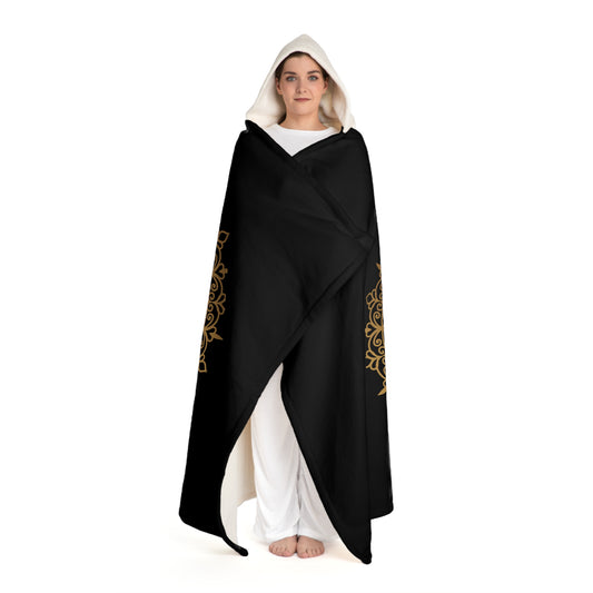MANDALA GOLDOPTIK • Kapuzen Kuscheldecke Schwarz • Wohndecke Sherpa 130cm x 180cm