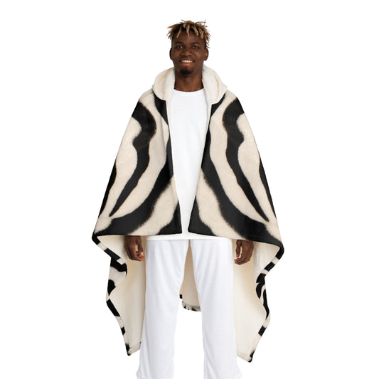 ZEBRA DECKE ZEBRAFELL PRINT AFRIKA TIER • Kapuzen Kuscheldecke Schwarz Weiß • Wohndecke Sherpa 130cm x 180cm