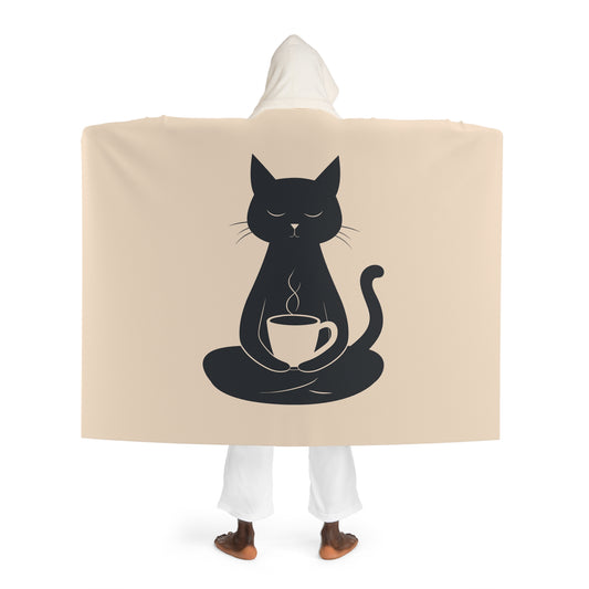 KATZEN KAFFEE LIEBHABER • Kapuzen Kuscheldecke Beige Creme • Wohndecke Sherpa 130cm x 180cm